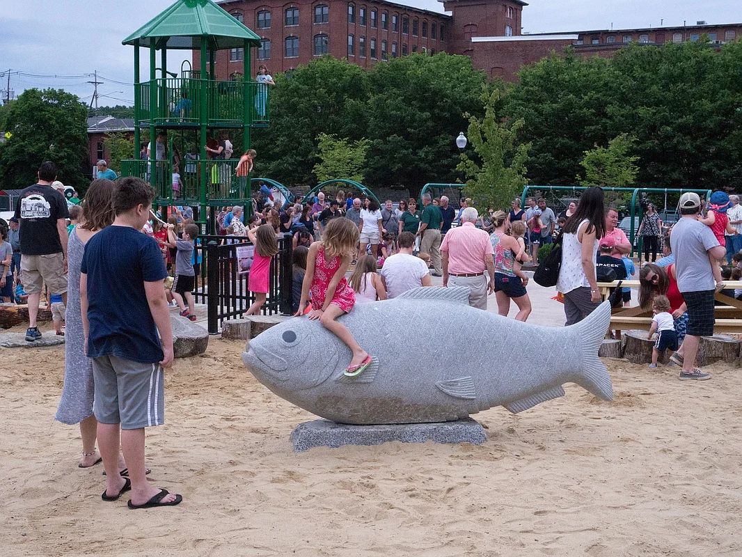 Alewife was commissioned by the City of Dover and the Childrens’s Museum of New Hampshire as a play sculpture for the playground in the Henry Law Park. Alewife is a fish species that migrates through the nearby Cocheco river for spawning.