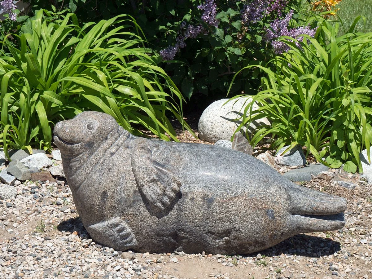 A play sculpture carved from a granite boulder, located near the entrance to the Seacoast Science Center in Rye / NH